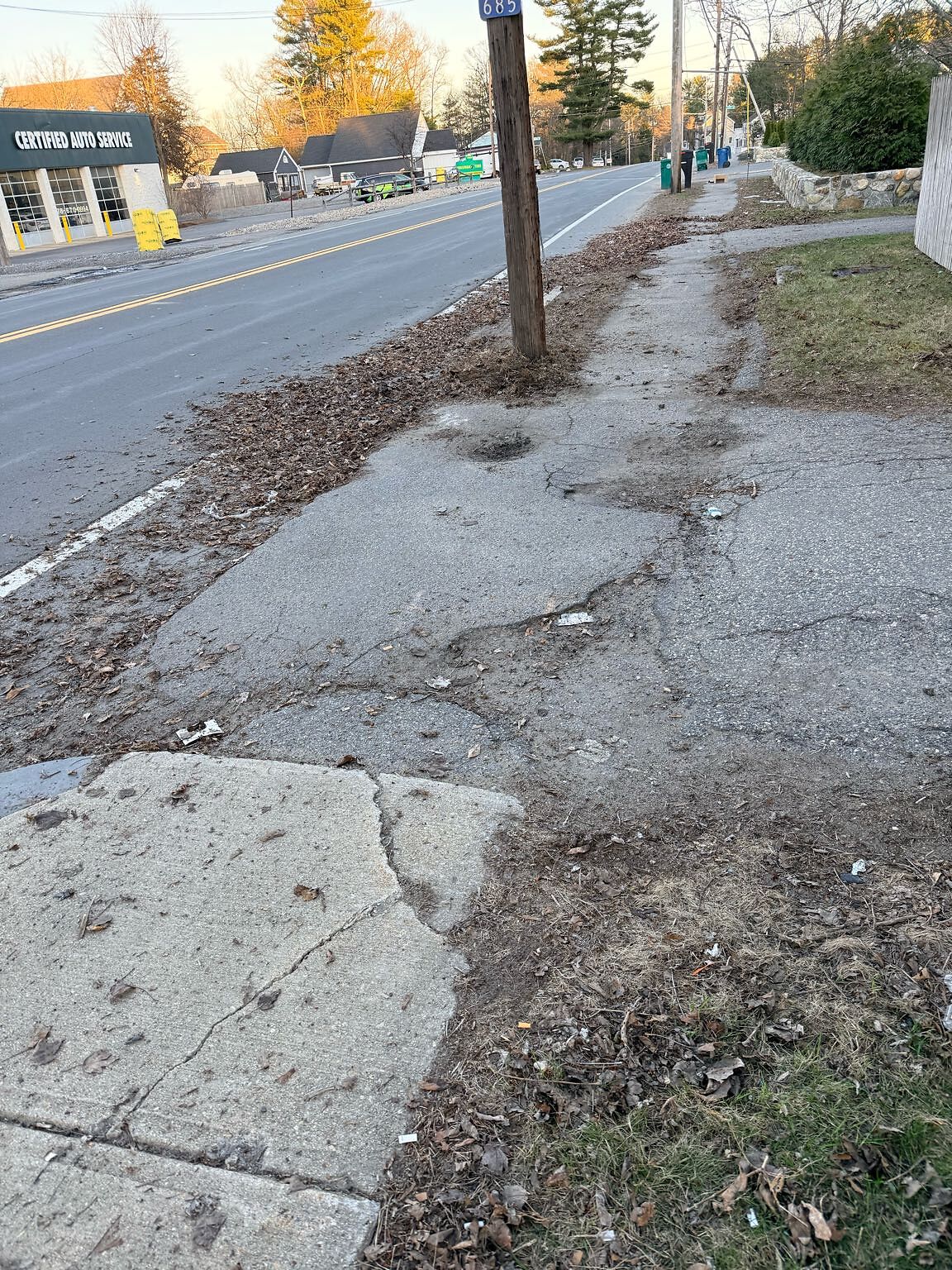 Sidewalk is collapsing, possibly undermined from recent water main break
