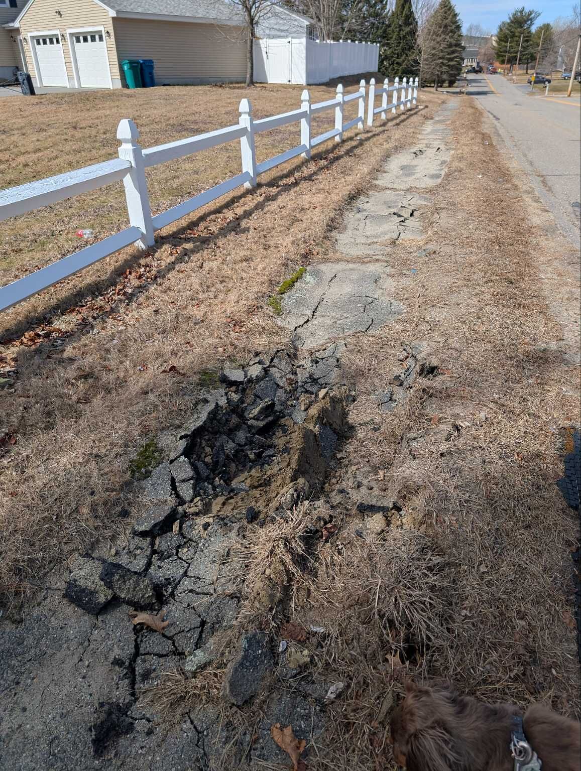 Corner of Berry Street and Whittier Road the sidewalk is completely torn up