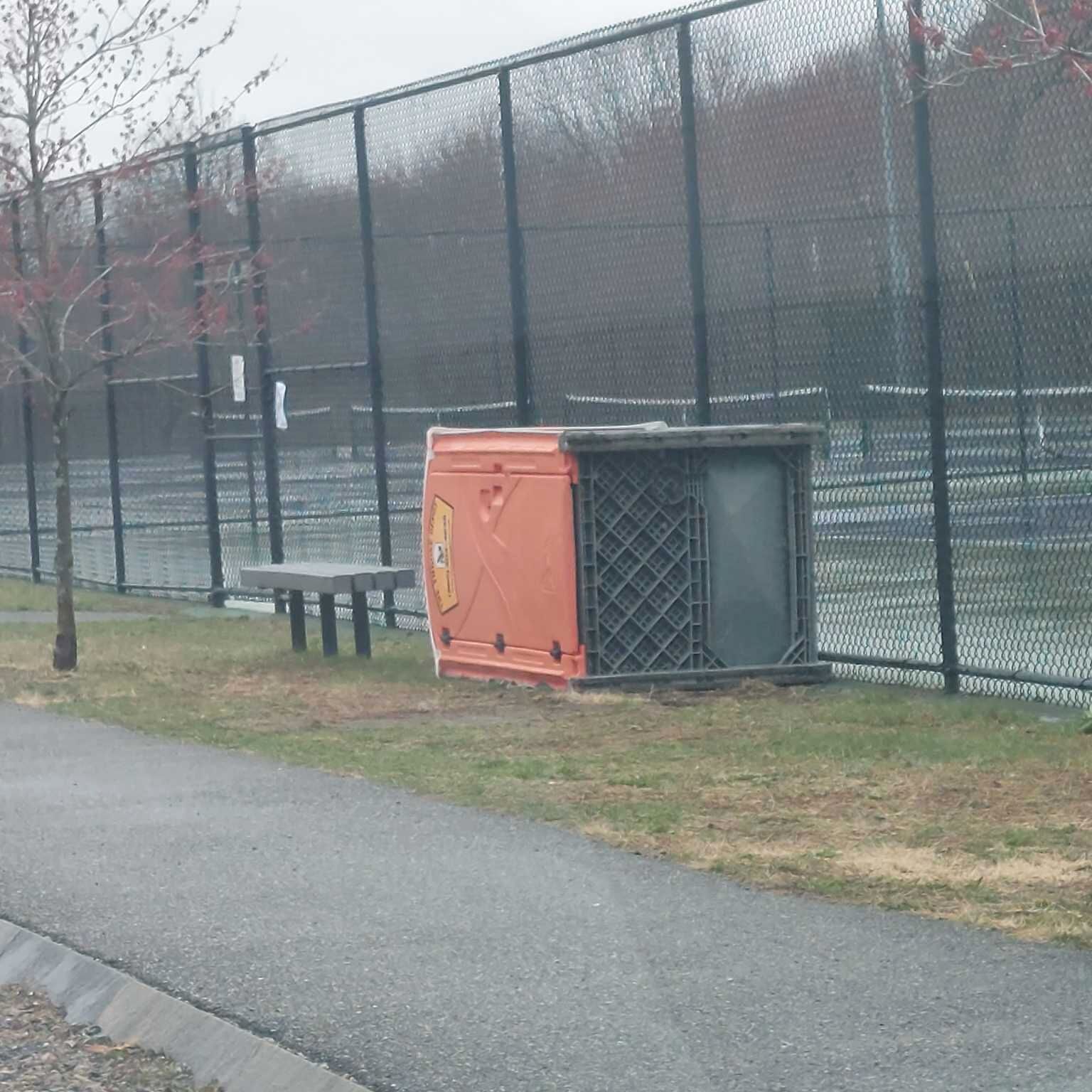 Porta potty tipped by tennis courts