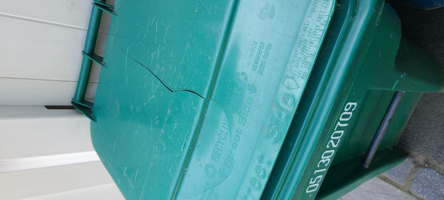 Hi this is for the recycle department, our recycle was picked up one day late and whoever came for pick up did not do a good job, the cover of our recycle bin has been cracked and broken,