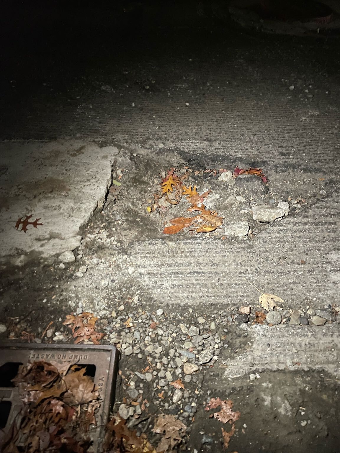 Big pothole is right between a raised manhole cover and a sewer grate at the end of Bridle Rd. going on to Bridge St. where road work is still ongoing.