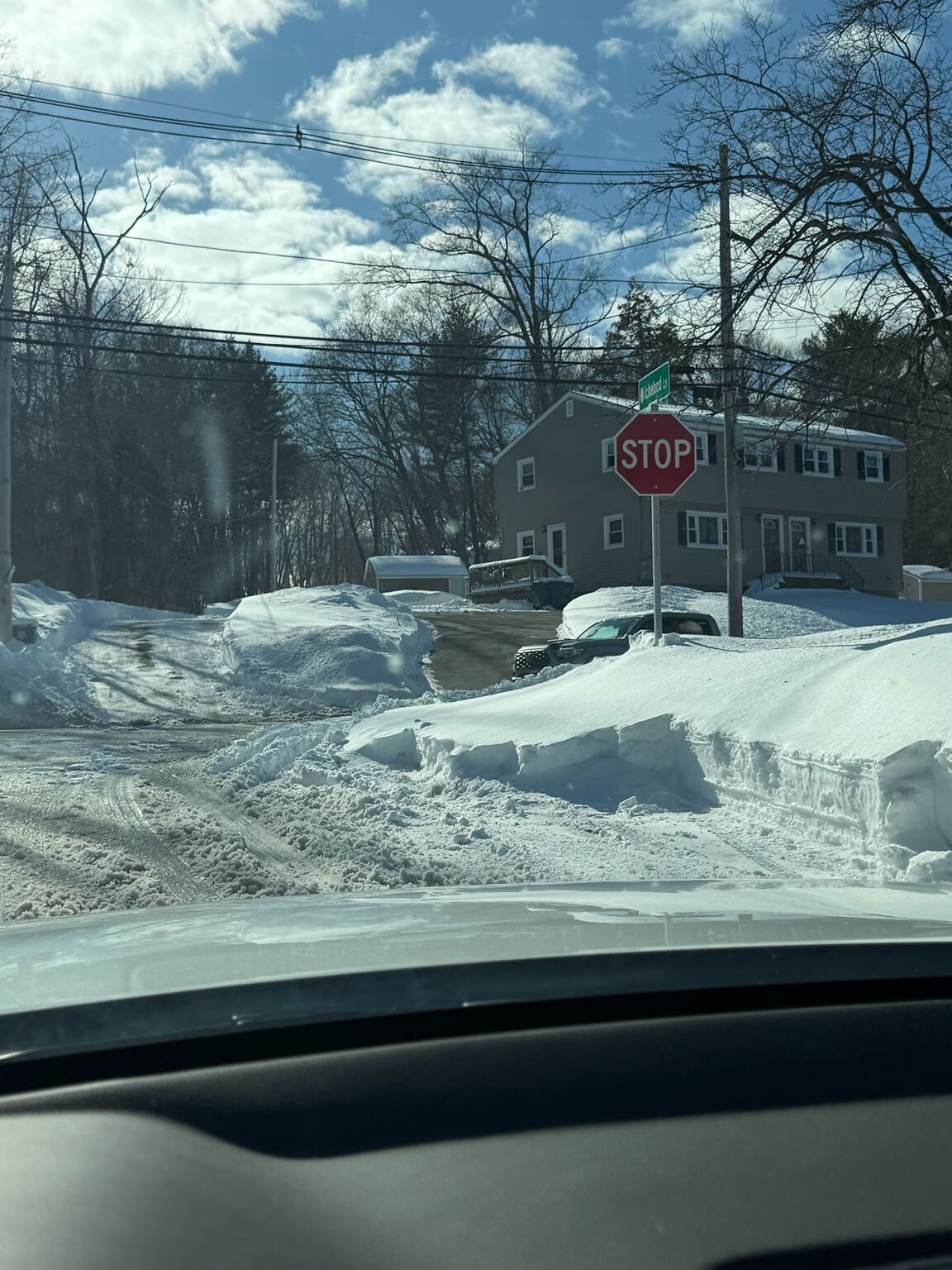 Update: last one had wrong location. Snow 10' out from curb, you have to drive on the wrong side of the road to pull out.