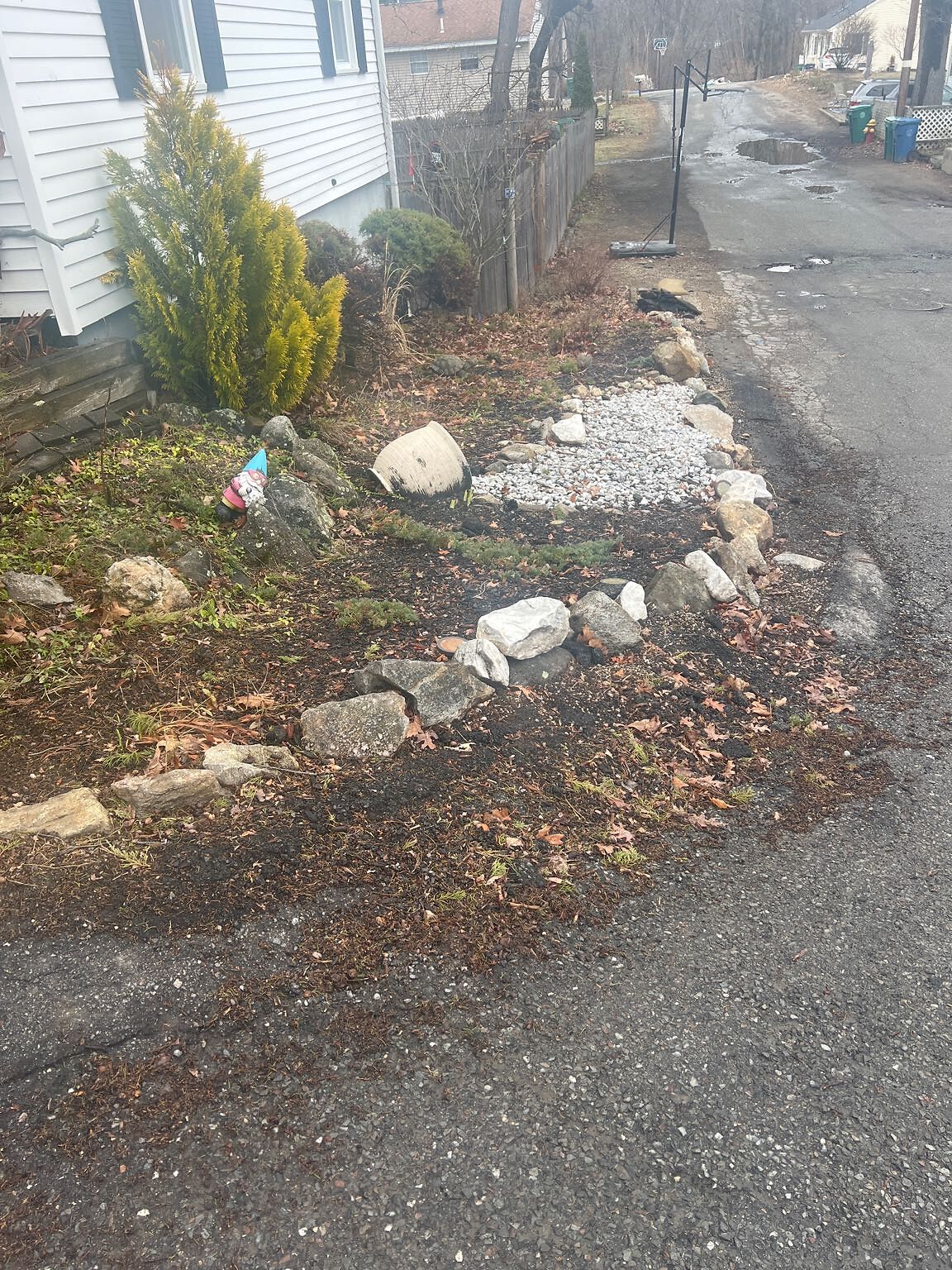 Asphalt curb destroyed by plows